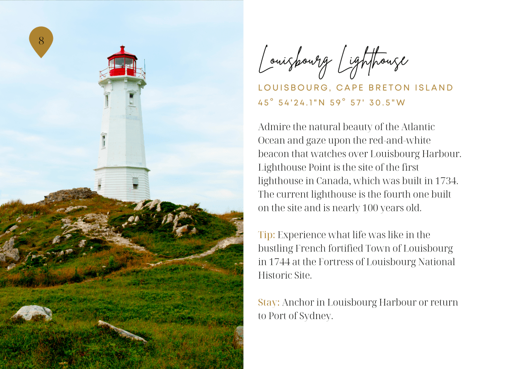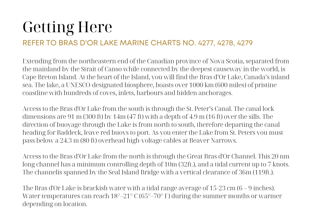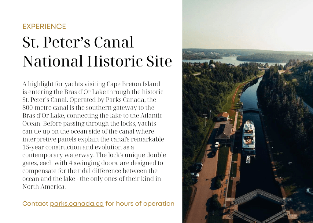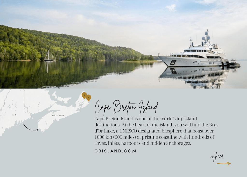 Extending from the northeastern end of the Canadian province of Nova Scotia, separated from the mainland by the Strait of Canso while connected by the deepest causeway in the world, is Cape Breton Island. At the heart of the Island, you will find the Bras d’Or Lake, Canada’s inland sea. The lake, a UNESCO-designated biosphere, boasts over 1000 km (600 miles) of pristine coastline with hundreds of coves, inlets, harbours and hidden anchorages. To help you explore this inland sea, we have developed our Signature Bras d’Or Itinerary highlighting some of the destinations and experiences, to inform your itinerary.